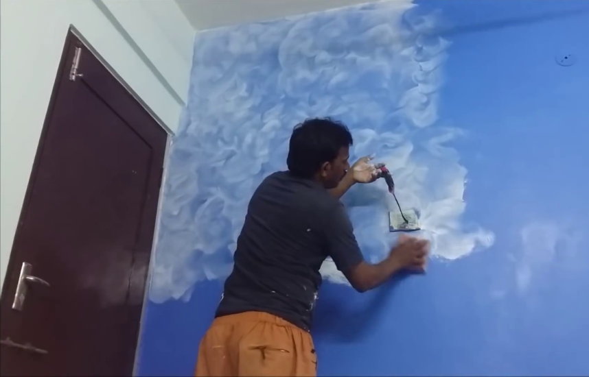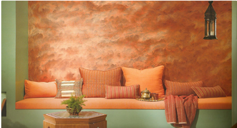 - स्पोंजिंग इफ़ेक्ट : स्पोंज को पेंट में भीगाकर बेतरतीब पैटर्न में दीवारों पर धब्बे के टेक्सचर से रूप में बनाया जाता है। इस टेक्सचर पेंट से सजी दीवारे आकर्षक नज़र आती हैं।